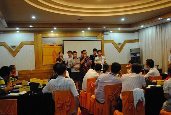 活動為期兩天,由“廈裝”公司中高層管理人員及大界公司講師、輔導員共27人參加,培訓活動在大界公司講師的主持下氣氛異常的熱烈,“廈裝”公司及各控股子公司各級管理人員帶著“團結互助,開拓進取”的思想而來,對課程要求很快就熟悉起來,并按照培訓的要求進行分組、選隊長、創(chuàng)造隊歌及隊手勢等有趣的活動。