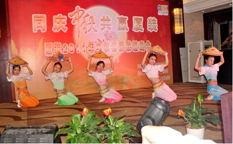 隆隆鼓聲拉開了晚會的序幕,伴隨著掌聲、歡呼聲,現(xiàn)場嘉賓和全體“廈裝”同仁的熱情一浪高過一浪。主持人幽默詼諧,員工熱情高昂,晚會各部分在“同慶中秋、共贏廈裝”的主題引導下,將豐富有趣的“廈裝”企業(yè)文化問答、滑稽的小丑魔術表演、驚險的雜技及古典的青花瓷舞蹈表演等等串聯(lián)在一起,柔媚的燈光,熱情的音樂,整個會場顯得格外輕松愉悅,熱情洋溢。